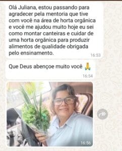 Hoje ajudo famílias a saírem do zero e construírem hortas produtivas de verdade.